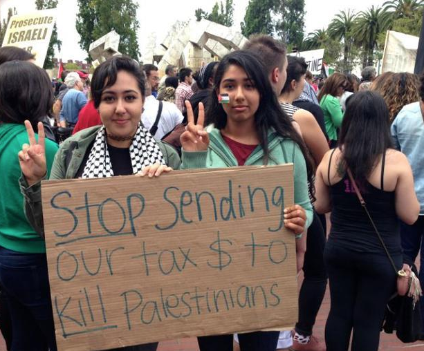 Pro-Palestinian demonstrators in San Francisco’s Justin Herman Plaza, July 21, 2014. (Photo: Brett Wilkins)