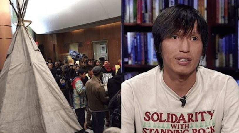 “We wanted to bring our songs and prayer to tell [Clinton] to oppose this pipeline, that the youth, the future leaders of this nation and the future occupiers of this nation, do not want this pipeline, because it will affect our water,” Daniel Grassrope of the Lower Brule Sioux Nation in South Dakota told Democracy Now. Grassrope said no one from the Clinton campaign would speak with the occupiers, who built a tipi in the Brooklyn campaign office. He stressed the importance of the #NoDAPL movement.