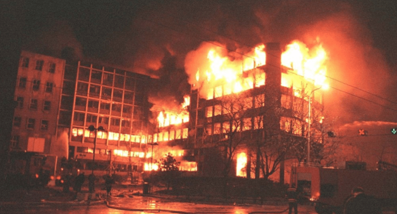 NATO warplanes also deliberately bombed a building containing the headquarters of Serbian state television and radio in the middle of densely populated central Belgrade. The April 23, 1999 attack occurred without warning while 200 employees were at work in the building. Among the 16 people killed were a makeup artist, a cameraman, a program director, an editor and three security guards. There is no doubt that the attack was meant to demoralize the Serbian people. There is also no doubt that those who ordered the bombing knew exactly what outcome to expect: a NATO planning document viewed by Bill Clinton, UK Prime Minister Tony Blair and French President Jacques Chirac forecast as many as 350 deaths in the event of such an attack, with as many as 250 of the victims expected to be innocent civilians living in nearby apartments.