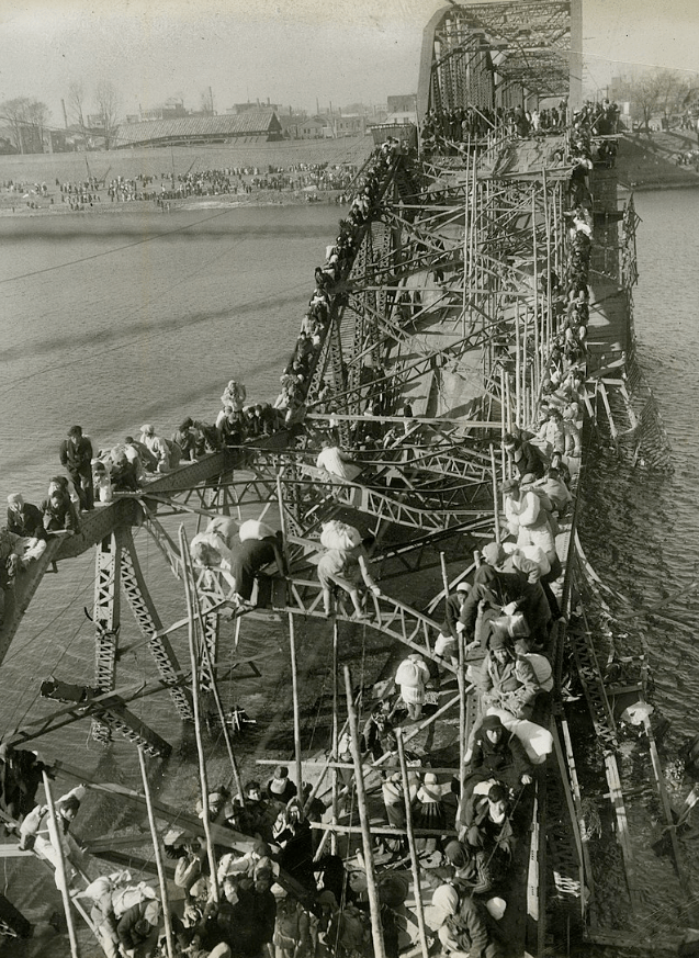 Flight of Refugees Across Wrecked Bridge in Korea, Pulitzer Prize-winning photo by Associated Press photographer Max Desfor.