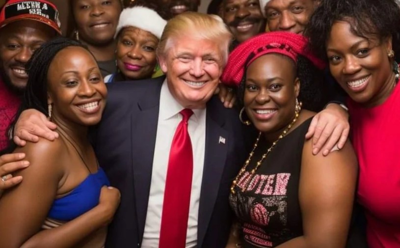 BBC highlighted numerous deepfakes, including one created by right-wing Florida radio host Mark Kaye showing a smiling Trump embracing happy Black women. On closer inspection, missing or misformed fingers and unintelligible lettering on attire expose the images as fake.